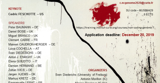 We are happy to announce the 9th International Workshop NON-CODING GENOME that will be held in Paris at Institut Curie, in February 26 – March 4, 2020.
