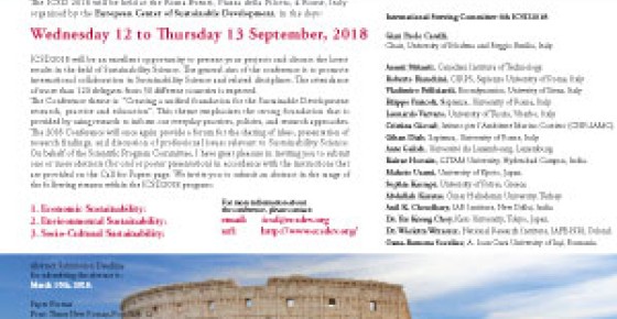 The International Conference on Sustainable Development is organised by the European Center of Sustainable Development in collaboration with CIT University. The sixth ICSD 2018 is inspired from the critical challenge of human, environmental, and economic sustainability concerning the present and future generations in a global-scale context. The Conference theme is: "Creating a unified foundation for the Sustainable Development: research, practice and education". This theme emphasises the strong foundation that is provided by using research to inform our everyday practices, policies, and analytical approaches. The 2018 Conference will once again provide a forum for the sharing of ideas, presentation of research findings, and discussion of professional issues relevant to Sustainability Science.