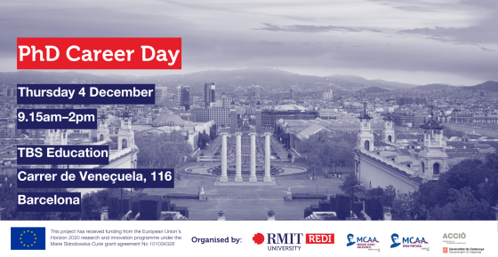 The Bridging Science and Business Working Group (BSB WG) is pleased to co-organise the PhD Career Day together with the MCAA Spain–Portugal Chapter, ACCIÓ, and RMIT Europe’s REDI Program.