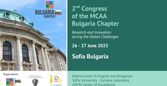 Second Congress of the MCAA - Bulgaria Chapter - 2025 “Research and Innovation during the Global Challenges” will held on June, 26 - 27th, 2025 in Sofia, Bulgaria, as a hybrid event with the support of EURAXESS Bulgaria and Sofia University. Official languages will be English and Bulgarian.
