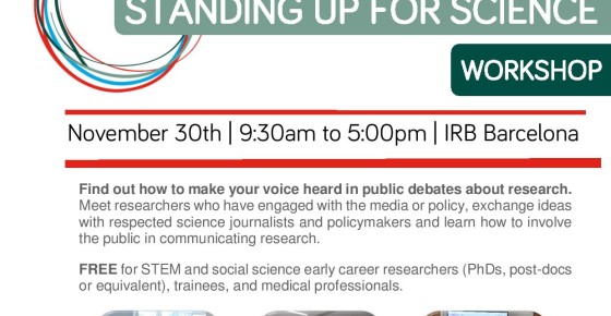 Join us at the Institute for Research in Biomedicine, Barcelona for our ‘Standing up for Science’ EU workshop on Friday 30th November. Find out how to make your voice heard in public debates about science and evidence.