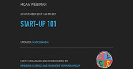 Organised by MCAA 27 November 2017 01:00 Add to Calendar Online BSB Webinar: Start-up 101 by Site Admin Share Online Share General Info General Info Venue & Accomodation Event Start Date 27 Nov 2017 Event End Date 27 Nov 2017 Our guest speaker, Dr. Marco Masia, introduces basic elements of starting up a business and discusses the questions you have about this topic.