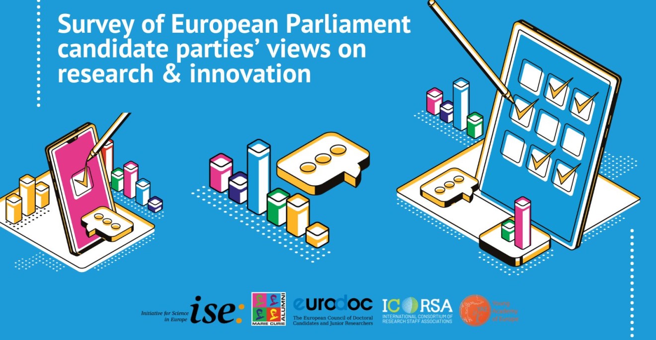 The Initiative for Science in Europe (ISE) together with the European Council of Doctoral Candidates and Junior Researchers (EURODOC), the International Consortium of Research Staff Organisations (ICoRSA), the Marie Curie Alumni Association (MCAA) and the Young Academy Europe (YAE), are launching a survey to gather the views on research and innovation of the candidate parties to the European Parliament on 6-9 June.