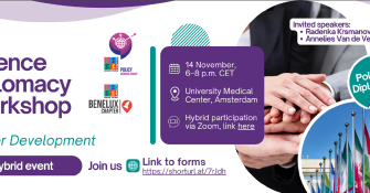 Join us for a Science Diplomacy workshop on Nov 14, 6–8 p.m. CET, online or at the University Medical Center in Amsterdam! The workshop explores how Science Diplomacy and Science Policy intersect and shape researchers’ everyday work and career development.